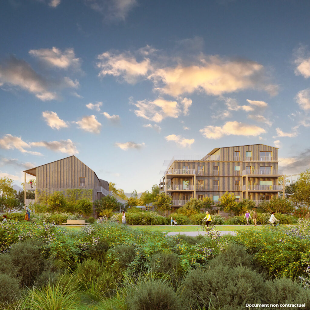 L’Azuré, un programme exemplaire RE 2025 composé de 34 logements du T2 au T5. Un projet qui privilégie la sobriété et porte de fortes ambitions écologiques au cœur de l’écoquartier Bongraine à Aytré, proche de La Rochelle.