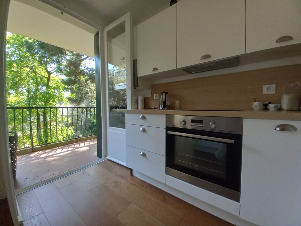 Ce grand T2 entièrement rénové en 2022 a su séduire ses nouveaux propriétaires pour son emplacement à quelques minutes de la plage et des commerces de LAJARRIGE, et aussi pour son calme et sa luminosité. Au premier étage avec ascenseur, il comprend un grand salon séjour de 26 m², une cuisine entièrement équipée, une chambre avec rangements, une salle d’eau avec des toilettes. Un balcon filant de 17 m² profitant d’une orientation Sud Ouest, sans vis à vis, et vue sur les pins. Pour compléter ce bien, une cave et un garage fermé en sous-sol.