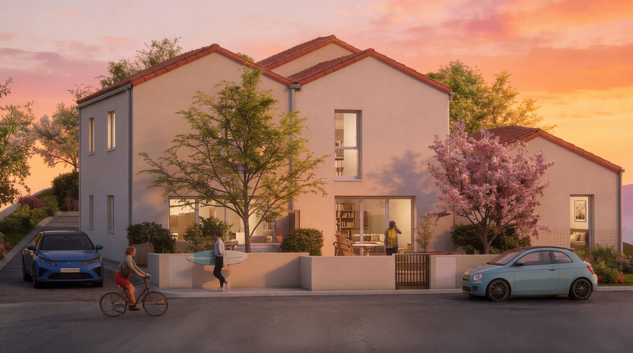 À proximité immédiate de la côte sauvage et des plages, Les Allées Marines bénéficie d’une situation unique. Nichées au cœur d’un quartier résidentiel paisible, les futures maisons s’intègrent harmonieusement dans un écrin de verdure.