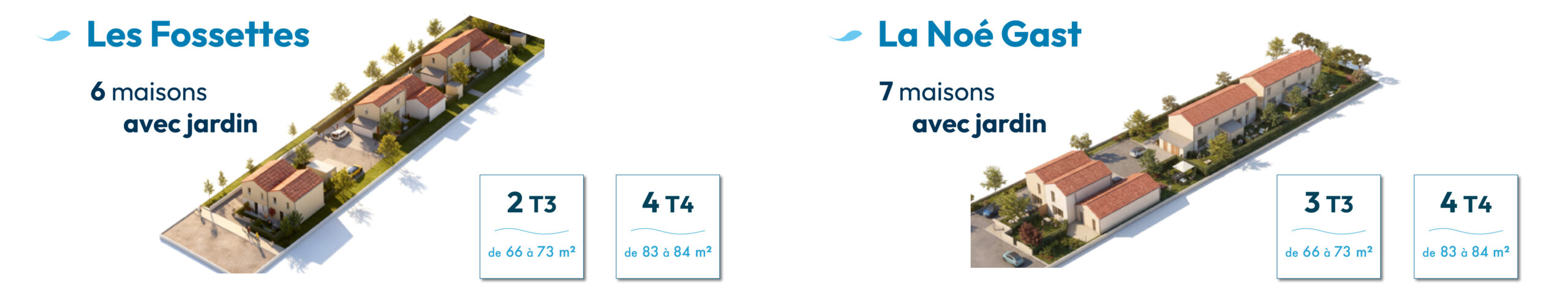 Idéalement situé proche de l’Océan, le programme Les Allées Marines est reparti sur deux terrains regroupant 13 maisons avec jardin proposées en Bail Réel Solidaire*