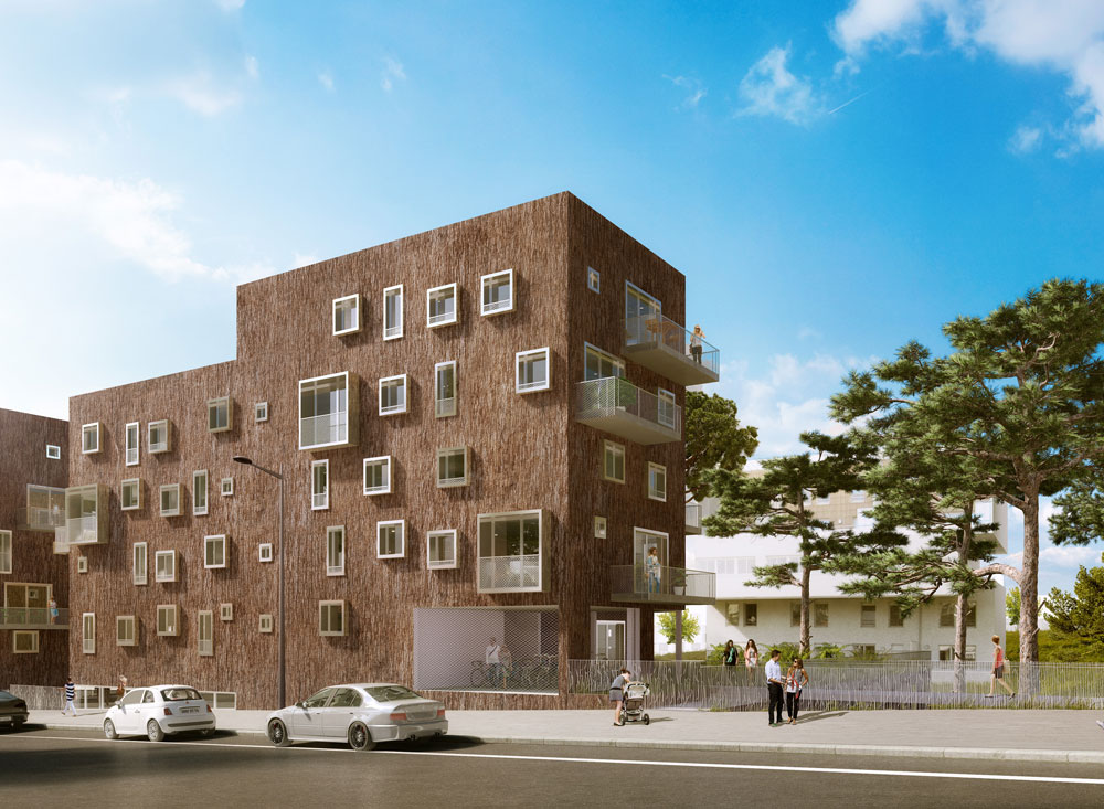 A un carrefour privilégié, du développement du quartier, exemplaire du renouveau urbain. Fragmenté, l’ensemble se compose sur trois îlots de trois bâtiments connectésentre eux par un socle commun contenant une crèche. Les failles entre lesbâtiments annoncent des vues spectaculaires sur le talweg, la prolongation du parc de la Chézine. L’espace ainsi constitué plonge sur un spectacle paysager florissant, qui sera agrémenté d’arbres de haute tige et de plantations respectant les essences existantes (pins, érables, charmes, cépées, spirées, viornes…), suivant un dessin aléatoire faussement naturel. Des passerelles et balcons plongeant dans la cime des arbres… c’est le mythe de la cabane de notre enfance, un rêve devenu réalité.