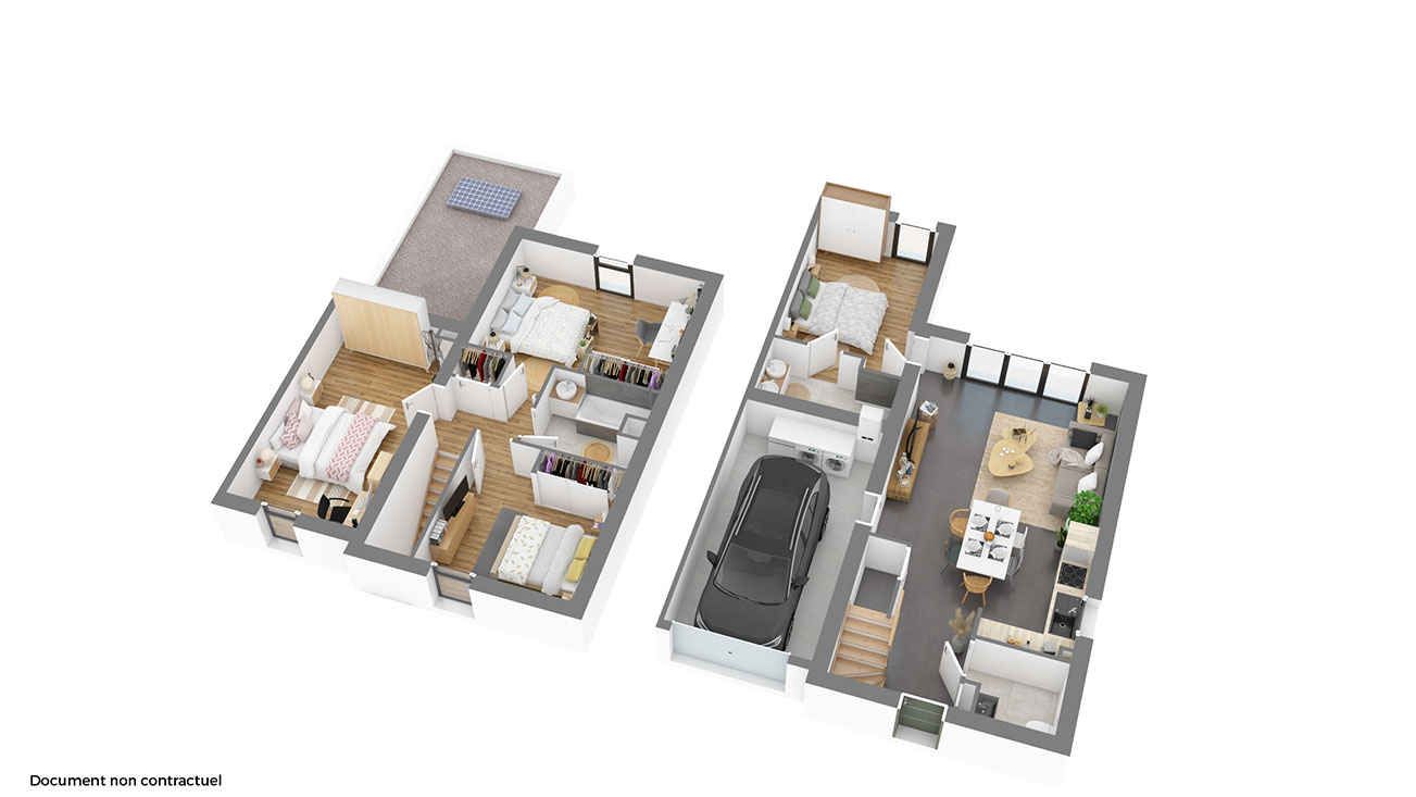 Habitables de suite ! Maisons T5 de 101m² avec jardin, garage, 2 stationnements & 4 chambres dont 1 suite parentale au RDC.